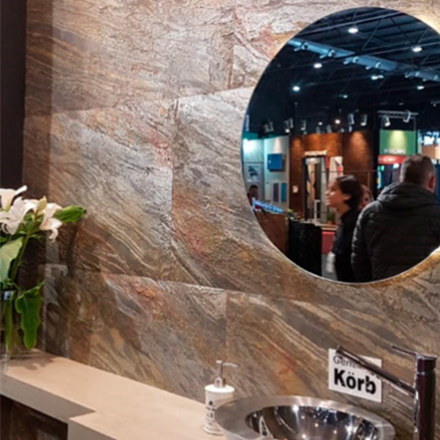 Lámina delgada compuesta por una fina capa de piedra natural y resina de poliéster.